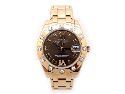 Rolex Pearlmaster 18k Everose Gold 34mm Diamond Dial Bezel Watch 81315