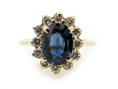 14k Yellow Gold 1.36ct Sapphire & Diamond Halo Ring