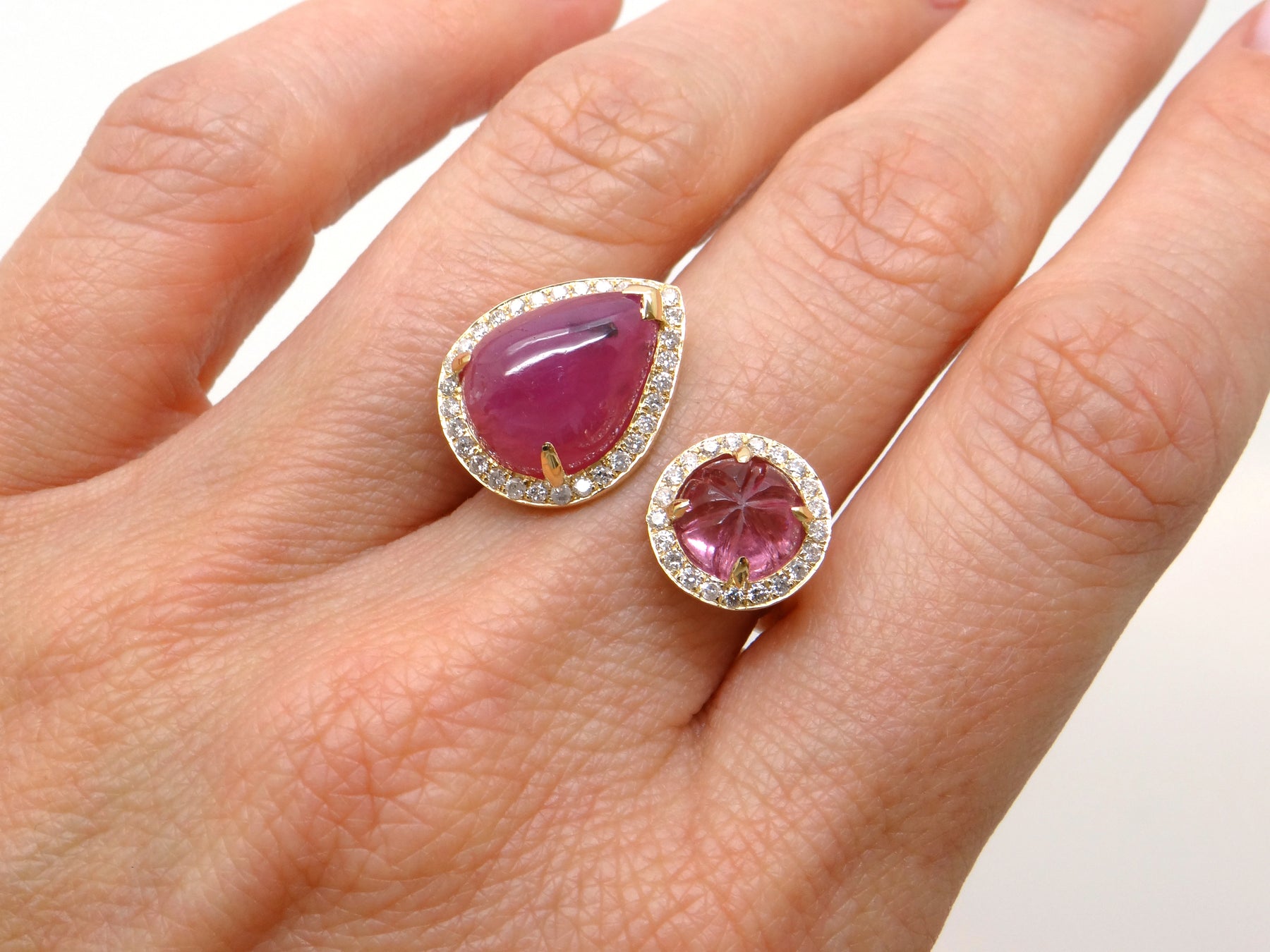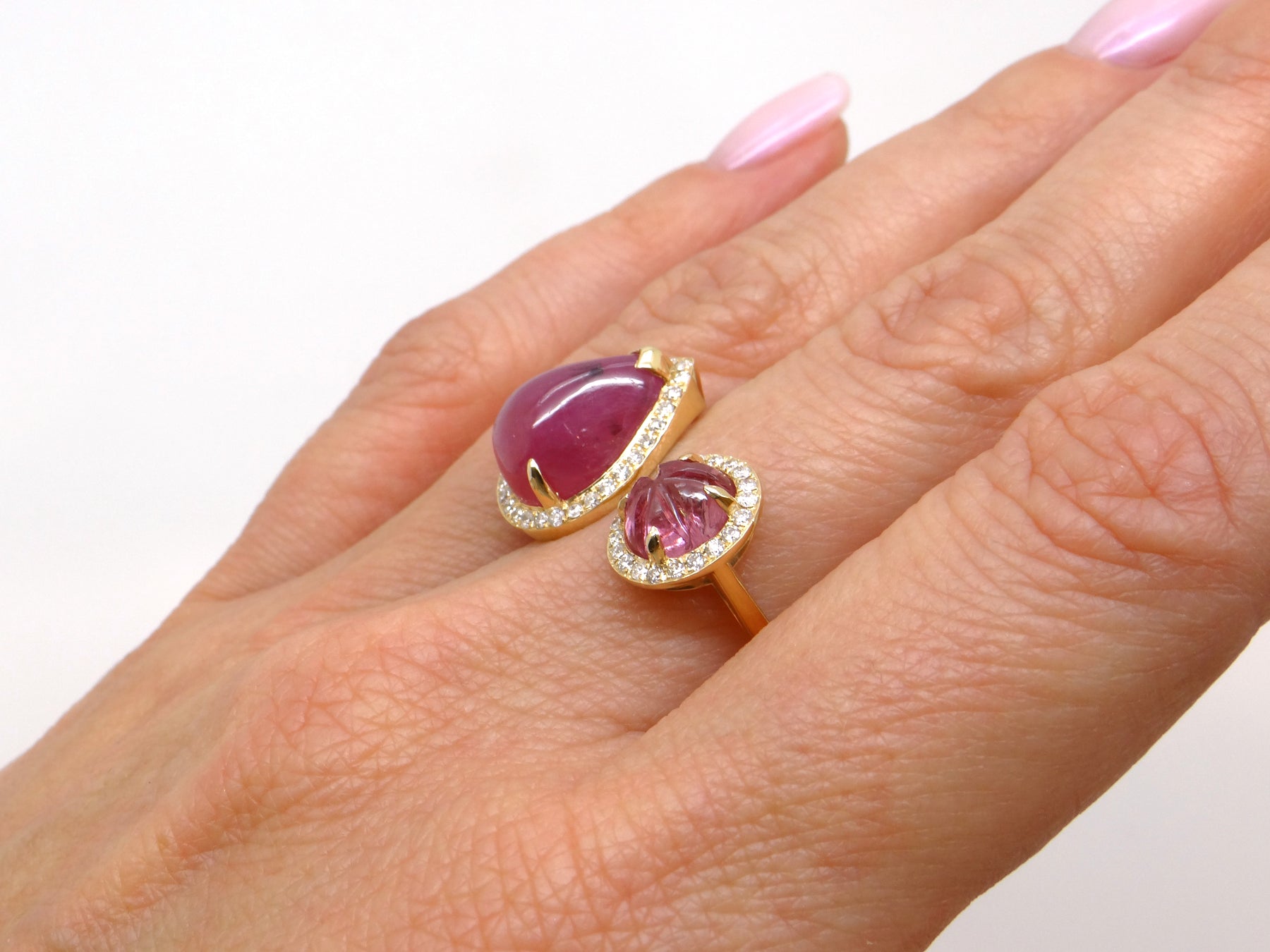 Center Stone: Cabochon Cut Ruby ( Natural Earth Mined)