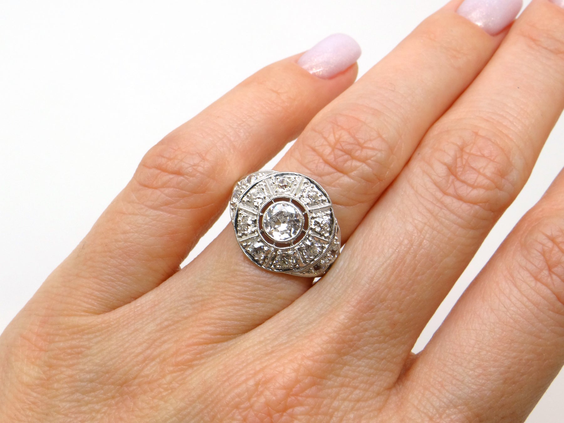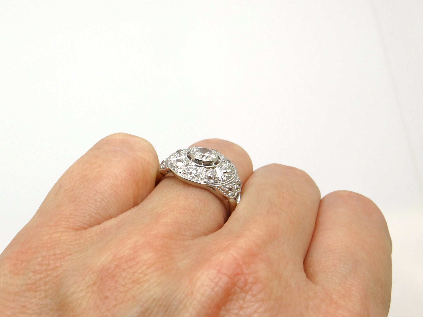 Center Stone: Round Old European Cut Diamond (Natural Earth Mined)