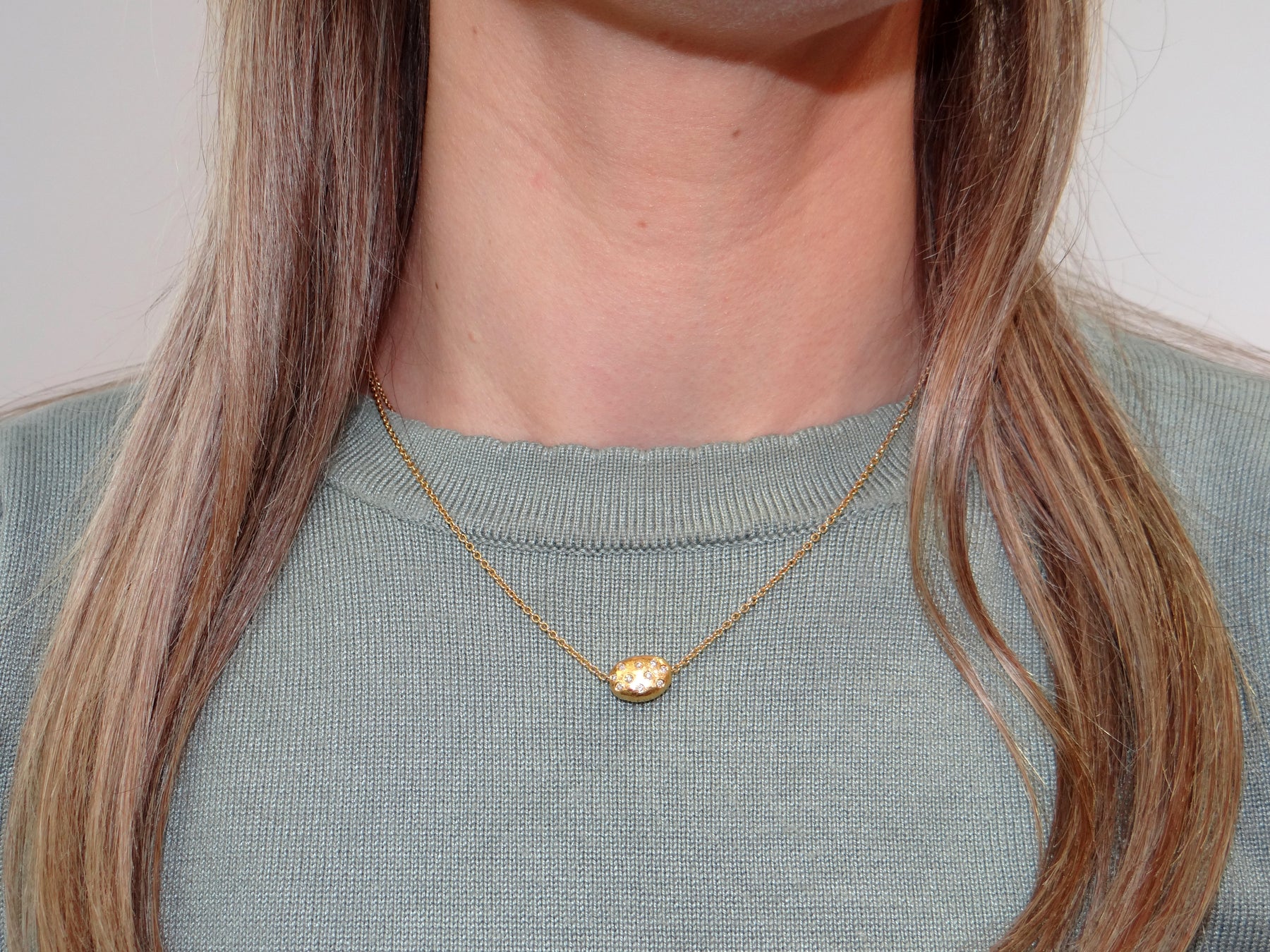 Metal: 24k Yellow Gold Bean on 18k Yellow Gold Chain
