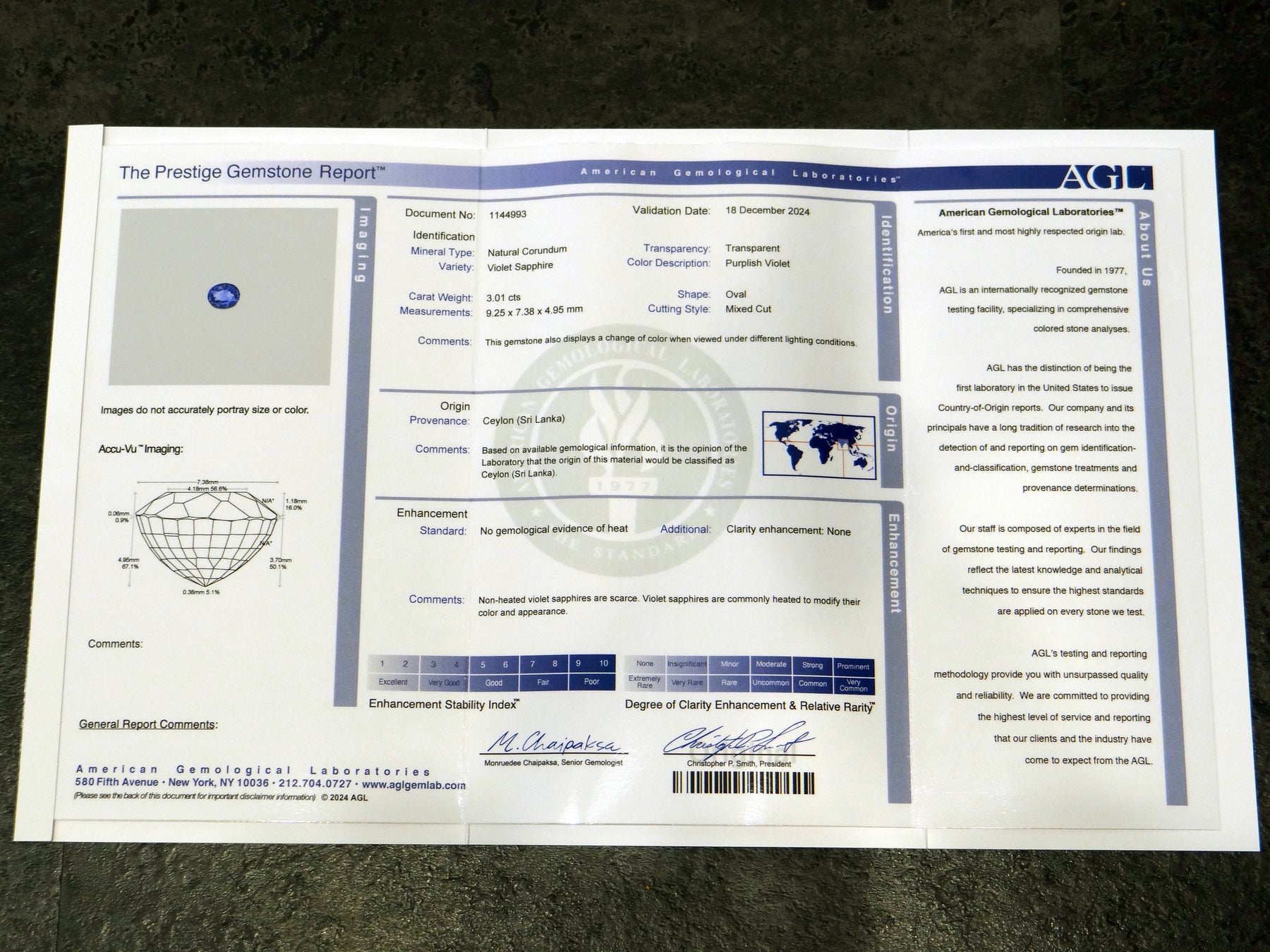 Center Stone: Oval Cut Sapphire (AGL Lab Report No:1144993)
