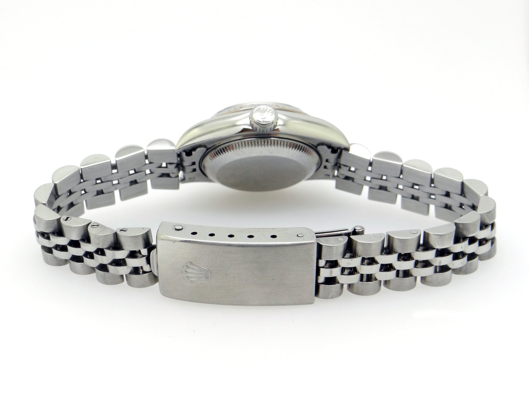 Band : Original Rolex Stainless Steel Jubilee Bracelet ( 20 links total excluding end tabs) with Rolex Buckle Clasp measures 6 1/2 inches wrist. Please Note wear to bracelet.